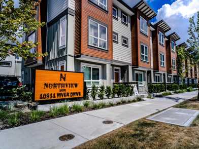 Like new CORNER UNIT at "Northview Estate"--a rare find waterfront townhouse community in Richmond. This 3 bed 2.5 bath unit featuring open concept layout, good natural light exposure with extra side of windows, and functional space for living and entertaining. GEOTHERMAL Heating and Cooling system, upgraded central vacumm system, quartz countertop, kitchen island, and FISHER & PAYKEL stainless steel appliances. Double side-by-side Garage spaces. Outdoor green space includes 5 acres of park & open space, the riverfront dyke trail, daycare & kids playgrounds. Close to shopping, Costco, restaurants, and Bridgeport skytrain station.