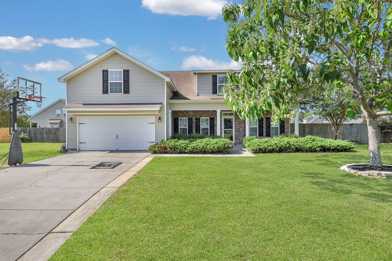 This beautiful South Effingham home features a stunning brick façade and a welcoming wide foyer. Inside, you'll find a beautiful dining room with crown molding, a vaulted living room with a fireplace, and a spacious primary suite on the main level with an ensuite bathroom and large walk-in closet. The gourmet kitchen boasts stainless steel appliances, granite countertops, and a large eat-in area. Upstairs, there are two carpeted bedrooms, a full bathroom, and a bonus room. The backyard is a true paradise, featuring a pool with fountains and a waterslide, wrap-around seating, and a fire-pit. This home perfectly combines elegance and outdoor enjoyment.