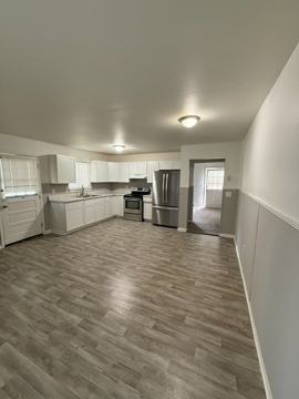 Beautiful 4 bedroom house. 1.5 bathrooms in a quiet neighborhood. Large kitchen with Brand new cabinets and countertops. Stainless steel refrigerator and stove included. All new carpet! Washer and dryer hookup inside the house. Pets are allowed with Pet Deposit and monthly pet fee. $45 application fee. First month's rent and security deposit due at time of move in. Background check will be conducted, no recent evictions or felonies. Recent rental reference needed. Proof of income is required. Sorry, but we do not accept Section 8 for this property.