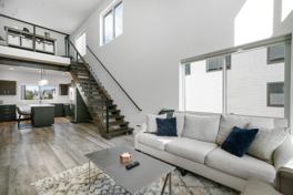 The main bedroom and attached bathroom are on the main floor with the attached two car heated garage. The second floor has your utility room with full size washer/dryer, kitchen with large eat in island, and open concept living area. There is two story ceilings and loft on the third floor. Third bed and deck with chair. Ready for you to move in, upon approval, we have thought of all your immediate needs, linens included!