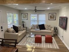 Gorgeous fully remodeled beach bungalow. Enjoy a stylish experience at this centrally-located home. Atlantic Beach's newest gem has finally arrived. Steps to the beach, roomy, comfy and close to all amenities you could ever need. This 3 bedroom, 1 1/2 bath cozy home has open floor plan, beautiful kitchen equipped with everything you would want. Granite counters, stainless steel smart appliances, farmhouse sink, etc… Wonderfully decorated home. Back private deck with gas fire pit and grill.