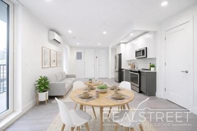 SPACIOUS & Stunning NEW 1 BED apartment with PRIVATE Roof Deck & Balcony!Spacious layout with very large rooms and flooded with sunlight! Featuring sleek a gray & white kitchen equipped with stainless steel appliances including a DISHWASHER and stone countertops. Wide plank gray floors, tall ceilings and an open concept living room & kitchen provide a bright & airy feel. Other features include Central Air Conditioning units in every room, and Sleek Modern bathrooms with waterfall shower head. The spacious bedrooms have large sound proof windows flooding the unit with sunlight and full size closets. Features include:Laundry on sitePrivate BalconyDishwasherShared Landscaped BackyardCentral AirTenants LoungeVideo IntercomPets on approvalGuarantors allowed