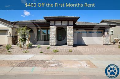 This stunning 2,350 sq. ft. home offers modern living with 4 bedrooms and 3 bathrooms in a highly sought-after Queen Creek neighborhood. The sleek kitchen features granite countertops, stainless steel appliances, and a spacious island, perfect for cooking and entertaining. The bright and airy living room seamlessly connects to the dining area, creating a welcoming and open atmosphere. The primary suite boasts a full bath with dual sinks and a walk-in closet, while the additional bedrooms provide plenty of space. Step outside to a serene private backyard complete with a covered patio, ideal for outdoor relaxation. Conveniently located near shopping, dining, and parks.