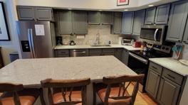 Newly renovated kitchen with granite countertops & stainless-steel appliances