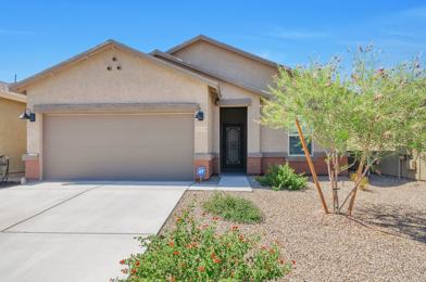 Imagine coming home to this gorgeous 4 bedroom/ 2 bathroom home with open floor plan in Silverbell Crossings II. Home features 9 foot high ceilings, quartz countertops, plenty of cabinet space and stainless steel appliances. Nice sized bedrooms and bathrooms. Water Softener and Washer/Dryer included as well as Smart home technology is available. Delightful backyard with covered patio perfect for your furry friends!