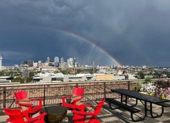 Access to a private rooftop deck with new patio furniture and excellent views of the city skyline and mountains