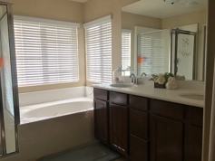Looking for a safe neighborhood close to schools and Edwards Air Force base? Beautiful two story home in Rosamond. All bedrooms upstairs. Formal living room and formal dining room. Eat in kitchen with granite counters. Upgraded dark rich cabinets. Half bath and laundry room downstairs. Neutral flooring throughout and ceiling fans in all rooms. Master bedroom has 2 closets and 2 sinks in the bathroom. Backyard has stamped concrete and patio. Nice corner lot with 3 car garage. Metal car port on side of the house.