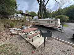 Fully furnished camper stocked with linens, pots, pans, dishes, and everything you need — just bring your clothes! This camper is owned and rented directly by Rocky Top Campground and is located on a private campsite in Blountville, TN.