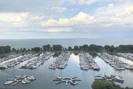 Enjoy Lake Michigan & Belmont Harbor views for days in this full-amenity high rise! Quiet end unit features two sunny bedrooms, fresh paint, updated flooring and shower, and a large living/dining space. Common amenities include a 24-hour door staff, recently-updated roof deck (accessible to tenants this summer!), fitness center, bike room, and storage lockers. Rent includes heat, water, hot water, and extra storage. Garage parking available in the building for $185/mo. Application fee of $57 and non-refundable move-in fee of $400. Welcome home!