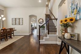 Beautifully appointed Highland home in highly sought after Prosper ISD. Home features engineered hardwood floors, plantation shutters, open floor plan with 2 dining areas & office allowing for plenty of space for your needs. Living room features stone fireplace, beamed ceilings & opens up to patio or to the breakfast & kitchen areas. Kitchen features planning center or butler's pantry, stainless steel appliances, white cabinets with designer backsplash & lighting, pantry & large island. Primary suite is spacious with seating area & spa like bath featuring walk-in shower, soaking tub, dual vanities & walk-in closets. Two additional bedrooms, a full bath & powder bath on the main level. Upstairs find a large game room & powder bath! Covered patio & spacious back yard, 2 car garage. Beautiful curb appeal!
