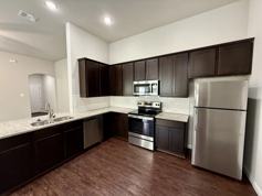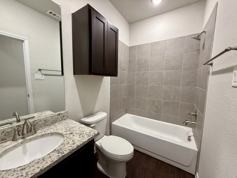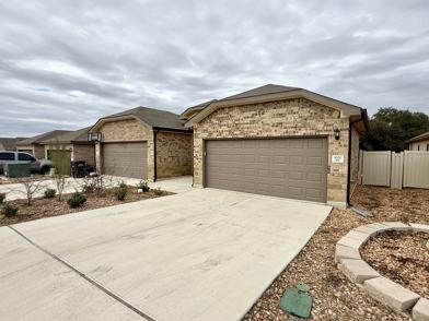 Gorgeous like-new 3 bedroom/2 bath single-story duplex in the highly desirable Westover Bluff Subdivision! With 11' high ceilings in the living room and kitchen. No carpet! Laminate flooring throughout. Open kitchen with recessed lighting, granite countertops, 42" cabinets, tasteful backsplash lighting, and stainless steel appliances. Large primary bedroom with 10 ft. tray ceiling and en suite bathroom with dual sink vanity. Window faux wood blinds included. Ceiling fans in all bedrooms, living room and 10' X 20' back covered patio. This lovely home comes equipped with a sprinkler system and xeriscaped front yard. Built in 2023. Great location 1 block over from Potranco & Ellison, directly behind Walgreens and Auto Zone, and near Stevens High School.