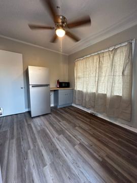 Freshly remodeled studio style apartment! New flooring and light fixtures, comes with refrigerator and microwave, no stove/oven! A good size bedroom with only a stand up shower!