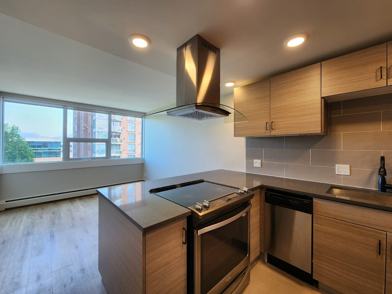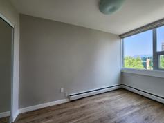 This one-bedroom suite is on the 2nd floor and is facing north with a tree lined view of West 10th. A spacious open concept kitchen/dining room with high-quality quartz countertops, a dishwasher and in suite laundry are all included in the suite's kitchen. The bedroom has sufficient space for a queen-sized bed as well as desk or dresser. The bedroom has a large 6 ft closet. Tenants have access to bike storage, storage lockers (for a fee) and the building's Coinamatic Smart Card laundry facilities, and parking (fee will apply).