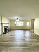 Home features wood laminate flooring throughout the main level with a large living room, kitchen that features all major appliances, and a dining room with additional cabinet and counter space. Half bath has a door that leads to a finished basement with added storage space, built-in wine rack, and sink. French doors off dining room lead to a partially covered back patio. Upstairs features a full bath with jetted tub, bedroom with laminate flooring, a Murphy bed, and built ins, and newer stackable washer/dryer. Primary bedroom has 2 closet spaces, ceiling fan, and attached bath with large stand-up shower.