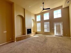You're welcomed in to the stunning main living room which features vaulted ceilings, a gas fire place, a walkout to the 2nd story patio and huge windows for plenty of natural light. Adjacent is the spacious kitchen and dining area which boasts granite countertops and ample cabinet space.