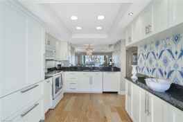 A HIDDEN GEM IN PARK SHORE LANDINGS. 2 BD/2BA ideally positioned with spectacular western views of the Venetian Bay and close to the Village where one can dine at bay side restaurants and shop to their hearts content. Imagine enjoying a cup of coffee in the sunroom which opens to the breezes of the bay or having a cocktail while watching sunsets! This easily accessible first floor condo (no steps) has a back entry which leads you to large, landscaped area overlooking the bay and boat docks. Remodeled and coastal decorated boasting wood plank flooring, white custom cabinetry, granite countertops, top appliances, upgraded bathrooms, custom closet systems and a unique patio of the kitchen with eastern exposure. The primary ensuite has a king bed, oversized walk-in shower, two vanities, closet systems. Renters are eligible to use the PARK SHORE member only beach, have access to the private community pool, spa, grilling patio, covered parking, and extra storage for the beach chairs and golf clubs. Minutes to Naples 5th Ave or Waterside Shops for more world class shopping and dining!