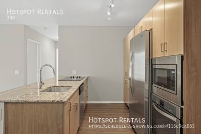 With a focus on nature and relaxation, these residences start with bamboo flooring in the main living areas, with porcelain floor tile in the baths and carpeted bedrooms. Custom cabinets, stainless steel refrigerators and under-mount sinks with granite countertops are kitchen highlights, while floor-to-ceiling windows and in-unit washers and dryers come standard. Even the little things, such as Grohe faucets and polished aluminum blinds are part of the experience.