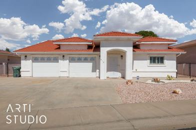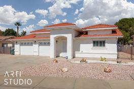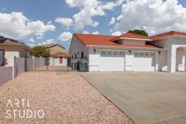Welcome to this charming residence in the heart of Mesquite, NV! This well-appointed home boasts a striking exterior with classic terracotta roof tiles and a pristine stucco finish, complemented by a desert landscape for easy maintenance. Step inside to discover a fresh and modern interior highlighted by sleek wood-like flooring and a spacious, open floor plan that seamlessly connects the living areas. The bright and airy living room is perfect for relaxation, leading into a stunning kitchen featuring stainless steel appliances, elegant granite countertops, and stylish backsplash. This home offers four generously sized bedrooms with plush carpeting for ultimate comfort, and beautifully updated bathrooms with modern fixtures and fine finishes. The master suite includes a private bathroom for added luxury. Additionally, this property includes a large laundry room with advanced appliances and ample storage, a two-car garage with extra room for activities, and a private backyard with a covered patio—ideal for entertaining. One small pet is welcome. Don’t miss the opportunity to live in this exquisite home!
