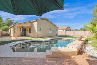 Unwind in your personal desert oasis at 2190 E Augusta Ave, Chandler, AZ 85249, where comfort meets style in this stunning 4-bedroom haven. This 1,759 sq ft retreat offers a harmonious blend of spacious interiors and luxurious amenities. Step inside to discover an inviting open-plan living area, bathed in natural light, that flows effortlessly into a beautifully appointed kitchen, ready for your culinary creations. A large kitchen island and stainless steel appliances are perfect for gatherings or breakfast. The two full baths boast modern finishes, ensuring every convenience is at your fingertips. Outside, the sparkling swimming pool beckons, promising endless hours of sun-soaked enjoyment and the ultimate spot for weekend gatherings. Low maintenance turf landscaping and pool service is included with rent!