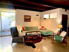 Furnished 2 Bedroom 1.5 Bath Upper Riviera single level mid-century home! The floor to ceiling windows in the main part of the home gives it an amazing indoor outdoor feel. The floors are polished concrete with a two sided fireplace in the middle of the home. It has a wood plank and beam ceiling and the wood accents and built-ins throughout the home gives it a very warm feel. Both bedrooms are oversized and open and bright. Washer and dryer inside the home. This view home sits on an amazing 1.1 acre lot with some flat areas and also hillside areas giving you a very private feel with views. The outdoor space has a built in kitchen and oversized patio area. The oversized garage is a true bonus area. This distinctive home is close to Sheffield Open Space, a short distance to Franceschi Park and just moments away from to the Belmont El Encanto Hotel and the Riviera Theater. Looking for a long-term lease for this furnished home.