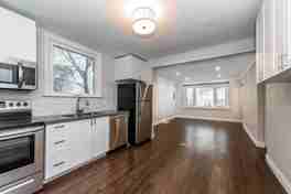 Newly renovated stunning 3 Bedroom one bath main floor rental unit located in a quiet family neighbourhood. All brand new appliances including Stainless Steel Fridge, Stove, and Dishwasher. Laundry is private and In Suite includes Washer and Dryer. Large and bright open concept living room and new kitchen with Quartz counter tops. Close to amenities, school and public transportation. This unit includes 1 parking spot and private entrance. Book your viewing today as this unit will not last.