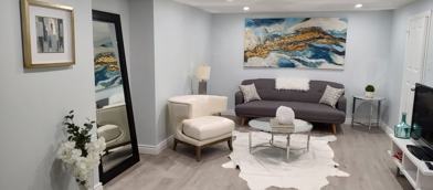 •Spacious Living: Enjoy a bright and airy living space with modern furnishings, including a cozy sofa which converts to a pullout bed for overnight guest and a dining area perfect for relaxing after a long day.