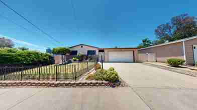 Backyard features nice, covered patio and turf! Large Garage for parking and storage!