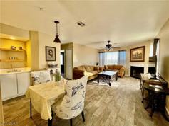 Looking for a beautifully furnished corner condo with panoramic views of Laughlin? This guard-gated 3-bedroom, 2-bath residence offers flexible rental options including monthly short-term or long-term leases, furnished or unfurnished. This ground floor unit is ideal for snowbirds, the home comfortably sleeps six and comes fully equipped for easy living and cooking and has its own washer and dryer. Located on the first level for convenient access, the condo features updated décor, laminate wood flooring throughout the main areas, and a well-appointed kitchen with bar seating, and a dining nook with wet bar. Relax by the cozy fireplace during cooler months while enjoying expansive city and desert views from nearly every window. Just steps from the community pool and BBQ area, this home offers both comfort and convenience in a secure guard-gated setting. Long-term leases are preferred, but short-term stays may be available. Please inquire for pricing and availability with furnishings.