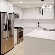 This modern 3 Bed, 2 Bath apartment at the Latimer offers a sleek stainless-steel kitchen with black fixtures and dishwasher, an open-concept layout, central AC, and a spacious balcony for relaxing or entertaining.