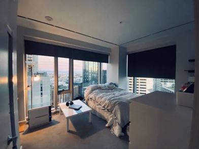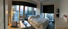 Amenities: washer/dryer in-unit, 24/7 front desk concierge, locker & bike storage, car garage, 2 rooftops, 2 floor gyms, yoga studio, pool, jacuzzi, mini-movie theater, library, conference room, public lounge