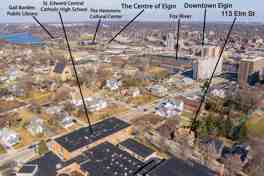 Beautifully remodeled unit on the West Side of Elgin, offering a blend of vintage charge and modern comfort. This unit features 9 foot ceilings and is filled with thoughtful details that bring an added touch of elegance. An oversized (42 x 4) wrap around enclosed porch lets in an abundance of light and offers a peaceful lounging area. The master bedroom boasts French doors, a spacious closet with a barn door, and direct access to the shared bathroom. The second bedroom is equally inviting with a large window that fills the space with natural light, along with a convenient storage cubby above the closet for extra storage. The updated bathroom ties everything together with a sleek grey shower surround, stylish tile, and a versatile shower-tub combination. The open kitchen has tons of cabinet space, a pantry closet, a side island/coffee bar with seating for stools. Vinyl flooring in the kitchen ensures easy maintenance, while the bedrooms and living room are comfortably carpeted. Vintage wood trim throughout - Private Entrance to the shared basement - Parking space in the driveway - Beautifully landscaped yard - Fresh Paint throughout - Professionally cleaned! Located near Downtown Elgin, Festival Park, Grand Victoria Riverboat Casino, I-90, RT. 31, Schools, Restaurants and so much more! A PROPERTY LIKE THIS DOESN'T COME AROUND OFTEN! Owner is a licensed broker.
