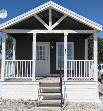 This tiny home is 399 sq. ft. and features a living room, kitchen, bathroom, bedroom, with washer and dryer included. Mailbox unit onsite.