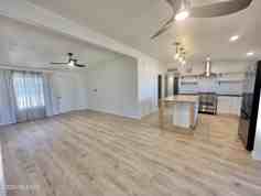 This beautiful 3-bed 1-bath home with central AC has been completely remodeled, and is ready for move-in late October! Stylish kitchen with updated cabinetry and premium stainless steel appliances (including fridge, gas range/vent hood & dishwasher). Dual pane windows, ceiling fans, and plank vinyl / tile flooring throughout. There is an additional enclosed laundry room with carport access for extra storage. Luxurious bathroom with tile shower and new vanity/mirror. Handicap accessible ramps on front and back doors, and grab bars in the shower. The backyard has mountain views, and a separate storage shed. Owner pays the monthly sewer bill, but tenant pays all other utilities including trash.