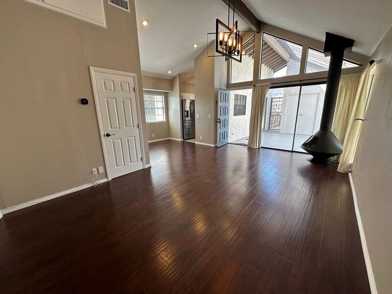 Large open living room with fireplace (fireplace not guaranteed functional)