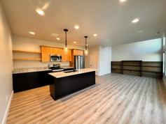 Bright, open-concept layout with vaulted entryway, quartz countertops, and a large kitchen island—perfect for relaxing or entertaining.