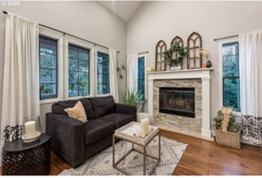 Inside, the home features hardwood floors, vaulted ceilings, and abundant natural light that create a warm and inviting atmosphere throughout. The cozy living area includes a fireplace which is perfect for relaxing during Portland’s cooler months, while the spacious loft-style upstairs family room provides flexible space for a media room, home office, or additional lounge area.