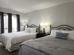 This is a 2 bedroom, 2 bath furnished condo. Bedroom #1 has a king bed, bath has large vanity with 2 sinks. Bedroom #2 is larger with 2 queen beds, bath is full with tub shower combo. There is a large balcony that spans the full back of condo. This is a walk up unit with no stairs.