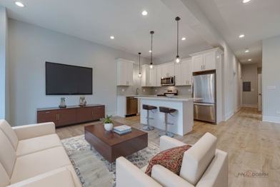 Welcome to your sun-filled, east-facing retreat in the heart of Logan Square! This fully renovated 2-bedroom, 2-bathroom home blends space, style, and modern comfort, just steps from the 606 Trail. Step inside through your private entrance into a bright, open-concept living and kitchen area, where bay windows invite in abundant morning light. The updated kitchen boasts sleek quartz countertops, stainless steel appliances, a large island with seating, and soft-close cabinetry, perfect for cooking, entertaining, or simply enjoying a quiet morning at home. Toward the back of the unit, a versatile nook offers the perfect spot for a dining table or home office setup. Both bedrooms are generously sized, easily accommodating queen beds along with nightstands and dressers. The primary bedroom includes a private en-suite bathroom with a walk-in shower, while a second full bathroom with a soaking tub and in-unit laundry adds convenience and comfort. Additional features include wide-plank hardwoo