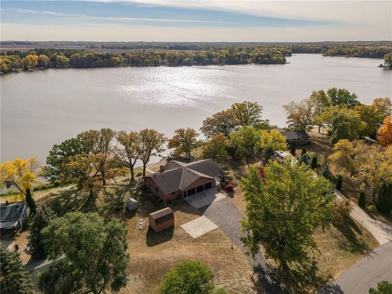Situated on 1.16 acres and spanning 200' of south facing lake shore, this walkout rambler is a gem. Wide open floor plan with stunning lake views. Lots of counter space in the open concept kitchen/dining/living room. Quartz countertops, refinished cabinets and gorgeous tile backsplash. Main floor has newer tiled handicapped accessible shower. Master bedroom features sliding glass door to access your deck overlooking the lake! Walk-in closet, and full bath with separate soaker tub. Lower level features a huge family room and walks out to the lake where you have a dock and a boathouse, two large lower level bedrooms and a 3/4 bath. Separate entrance from garage to lower level. Ready to move in and enjoy. Also listed for sale.