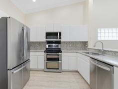Beautiful 3-Bed, 2-Bath Home in the Sought-After active adult Community of Palm Isles! Light bright & bathed in natural light. Enjoy a private screened patio. The modern kitchen is equipped with SS appliances, granite counters, pantry, and barstool seating. Retreat to the primary bedroom, complete with a walk-in closet offering extra storage, and indulge in the upgraded en-suite bath featuring a designer dual-sink vanity. Newly updated clubhouse opening in January. Resort-style amenities include a Cafe, Indoor & outdoor Pool,Tennis, and Pickleball courts, new 600 seat theatre and more. Manned Gate. Conveniently located near dining and shopping.