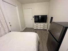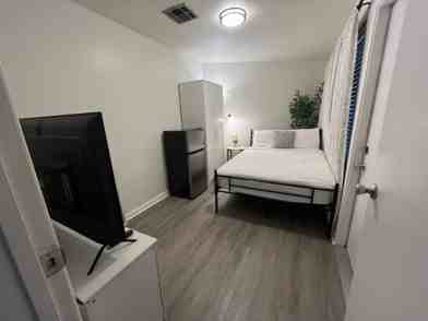 Furnished, complete with Full Bed, 55" ROKU TV, Nightstand, Mini-Fridge. Laundry & Dryer on Premises and utilities included.