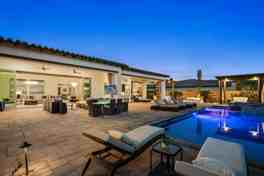 A rare opportunity to experience an exceptionally luxurious property nestled within the gated community of Griffin Ranch. This exquisite well appointed 4-bedroom, 5-bathroom cornerstone of tranquility is fiercely intentional about your privacy and comfort. Located on a cul-de-sac, this property offers sweeping mountain views, attractive landscaping, and a resort-like outdoor area. The backyard is a true retreat featuring a custom pool and spa, multiple seating areas, built - in BBQ, firepit and spacious loggia with pergola shade. Large slide away glass doors seamlessly connect the outdoor entertaining area with the indoor living spaces, creating the perfect setting for enjoying the desert lifestyle. Inside, the open concept floorplan is filled with natural light and thoughtful design. The gourmet chef's kitchen is complete with Thermador appliances, a large center island with bar seating, and an additional prep kitchen complete with a second sink, dishwasher, and refrigerator - ideal for hosting gatherings! This gorgeous retreat offers 4 spacious bedrooms and 5 bathrooms, including 2 luxurious primary suites with walk in closets and spa inspired bathrooms. A versatile bonus room provides additional space for a media room, office, or guest lounge and opens directly to a private patio. With approximately 4,154 sq ft of living space, this beautifully appointed home combines elegance, comfort, and functionality in one of La Quintas most sought after communities. Enjoy the amenities Griffin Ranch has to offer including a 10,000 sq ft clubhouse, state of the art fitness center, Pilates/yoga studio, billiards room, jr Olympic size pool and spa, tennis and pickleball courts, bocce ball and much more! Now booking Nov - March 2027. Please inquire for pricing!