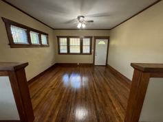 This 5 bedroom, 1 bathroom home offers a practical layout with a mix of updated finishes and original character. The main level includes 2 bedrooms with hardwood flooring, while the upper level has 3 carpeted bedrooms. There are wooden built-ins throughout and a combination of hardwood, carpet, and luxury vinyl plank flooring.