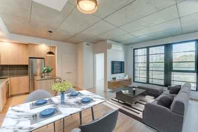 1320 Rue Olier #304, Montréal, QC is a 2 bedroom, 1 bathroom apartment for rent. It is located in the Le Sud-Ouest neighborhood of Montréal. It has apartment amenities including hardwood floor, dishwasher, balcony, in-unit laundry, walk-in closets, air conditioning, and high ceilings. Cats and dogs are allowed, making it a pet-friendly apartment.