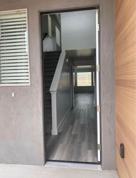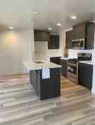 The thoughtfully designed layout features a spacious primary bedroom on the main floor, complete with a luxurious en-suite bathroom that boasts a beautiful double vanity and a generous walk-in closet, equipped with a convenient washer/dryer hookup. The heart of the home is the modern kitchen, outfitted with sleek stainless steel appliances and a stylish bar area, perfect for casual dining and entertaining.