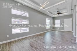 Welcome to 116 Lauryn your new home in San Juan, TX! This modern, newly constructed one-bedroom, one-bathroom apartment offers a unique "L" shaped yard, providing ample outdoor space for you and your pet to enjoy. The apartment comes with a 12-month lease and features a large, walk-in closet for all your storage needs. The kitchen is equipped with stainless steel appliances, and the convenience of having a washer and dryer included in the unit cannot be overstated. The apartment complex offers 24/7 maintenance support, ensuring your living experience is as comfortable as possible. The rent includes water and trash services, as well as landscaping, freeing you from additional chores and expenses. As a special offer, we're giving half off the first month's rent. This pet-friendly apartment does have breed restrictions, so please inquire for more details. Experience the perfect blend of comfort, convenience, and modern living in this beautiful apartment.