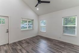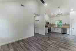 Charming 2-bedroom, 2-bath home featuring LVT flooring and modern farmhouse finishes throughout. The kitchen is equipped with Samsung appliances, and opens seamlessly to the living area, with vaulted ceilings creating a bright and spacious feel.