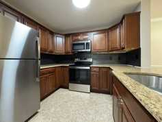 This spacious 2-bedroom, 2-bath condo offers a thoughtfully designed floor plan with designated living and dining areas and a split-bedroom layout. The kitchen is a chef’s dream, boasting ample cabinet space, granite countertops, a stylish backsplash, and brand-new stainless-steel appliances, including a top-mount refrigerator, glass-top range, dishwasher, and microwave.