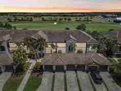Enjoy resort-style living with breathtaking sunrise views overlooking Commander #9! Beautifully updated Diangelo second-floor Veranda in Lakewood National Golf Club, offered turnkey furnished and available January–March 2026. This 2BR/2BA + den condo features 1,336 sq. ft., a detached 1-car garage, and two screened lanais—one overlooking the golf course and clubhouse, the other ideal for sunset lounging. Interior highlights include impact-rated windows/sliders, porcelain tile flooring, luxury plank flooring in bedrooms, custom electronic shades, two king beds, and a Murphy bed in the den. The kitchen features stainless-steel appliances, coastal granite counters, and a lowered counter-height island with open-concept flow. Bundled golf membership includes access to two Arnold Palmer–designed championship courses, resort pool, Tiki bar, clubhouse dining, spa, fitness center, tennis, pickleball, and bocce plus an active calendar of social events. Utilities included and electricity up to $100 a month. Guard gated and roaming security service. Convenient to shopping, dining, medical facilities, and beaches. Pet friendly, no smoking.