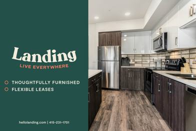 When you enter your Landing home for the first time, you'll notice the modern tones throughout, from the open concept floor-plan to the perfectly paired with the sleek kitchen with stainless steel appliances. Our included furniture and decor are expertly selected and placed for this individual layout, and the mounted Samsung Smart TVs are ready for your enjoyment. Finally, your home is filled with our convenience amenities from the luxurious bedding to the completely stocked kitchen. Every element of your new home invites you to step right into a hassle-free living experience.